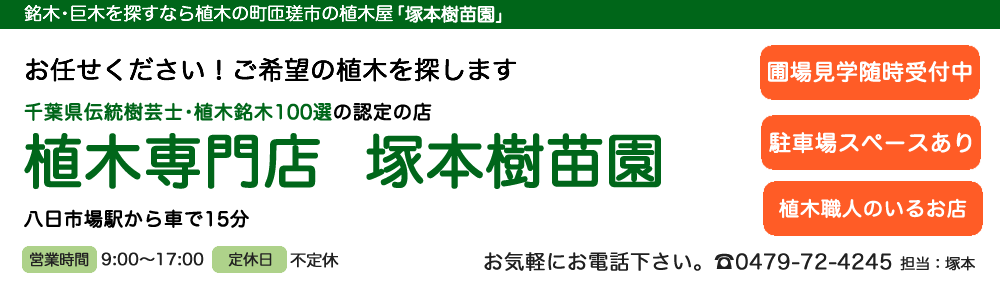 はじめまして 当サイトにお越し下さり有難うございます。 まずは、当社の自慢のイヌマキが「千葉県銘木100選」に選出されました。 千葉県よりいただいた看板に書いてある「枝の配置やバランスが良く、樹姿がすばらしい」という評価は、私たちが大 […] 続きを読む